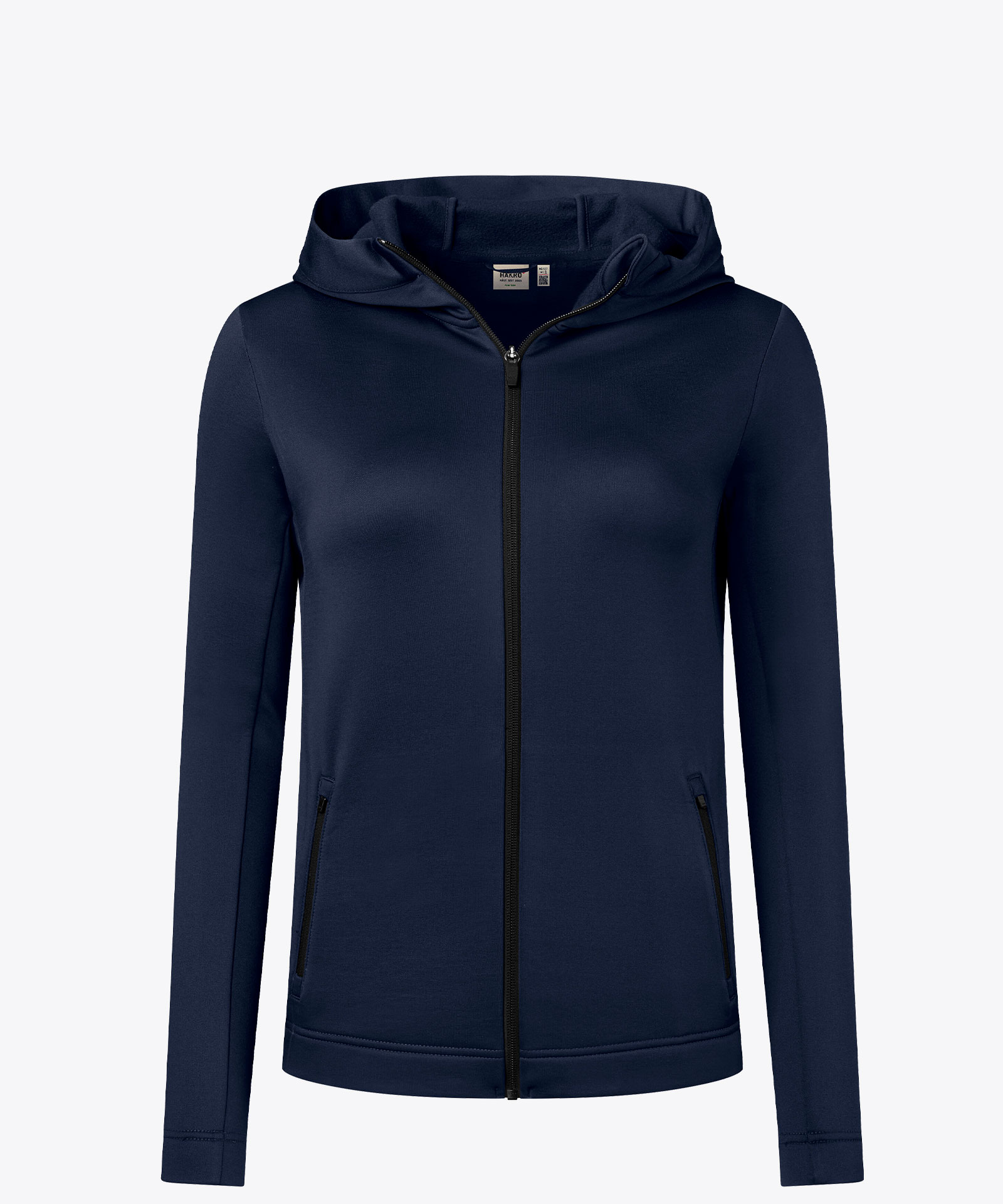 Funktionelle, sportiv geschnittene Jacke mit Zweinaht-Verarbeitung an der Kapuze. Frontreißverschluss mit Reißverschlussgarage und Einschubtaschen mit Reißverschlüssen. Alle Click-Down-Reißverschlüsse von YKK® in Schwarz. Pflegeleichtes und schnelltrocknendes Stretchmaterial aus der Funktionsfaser