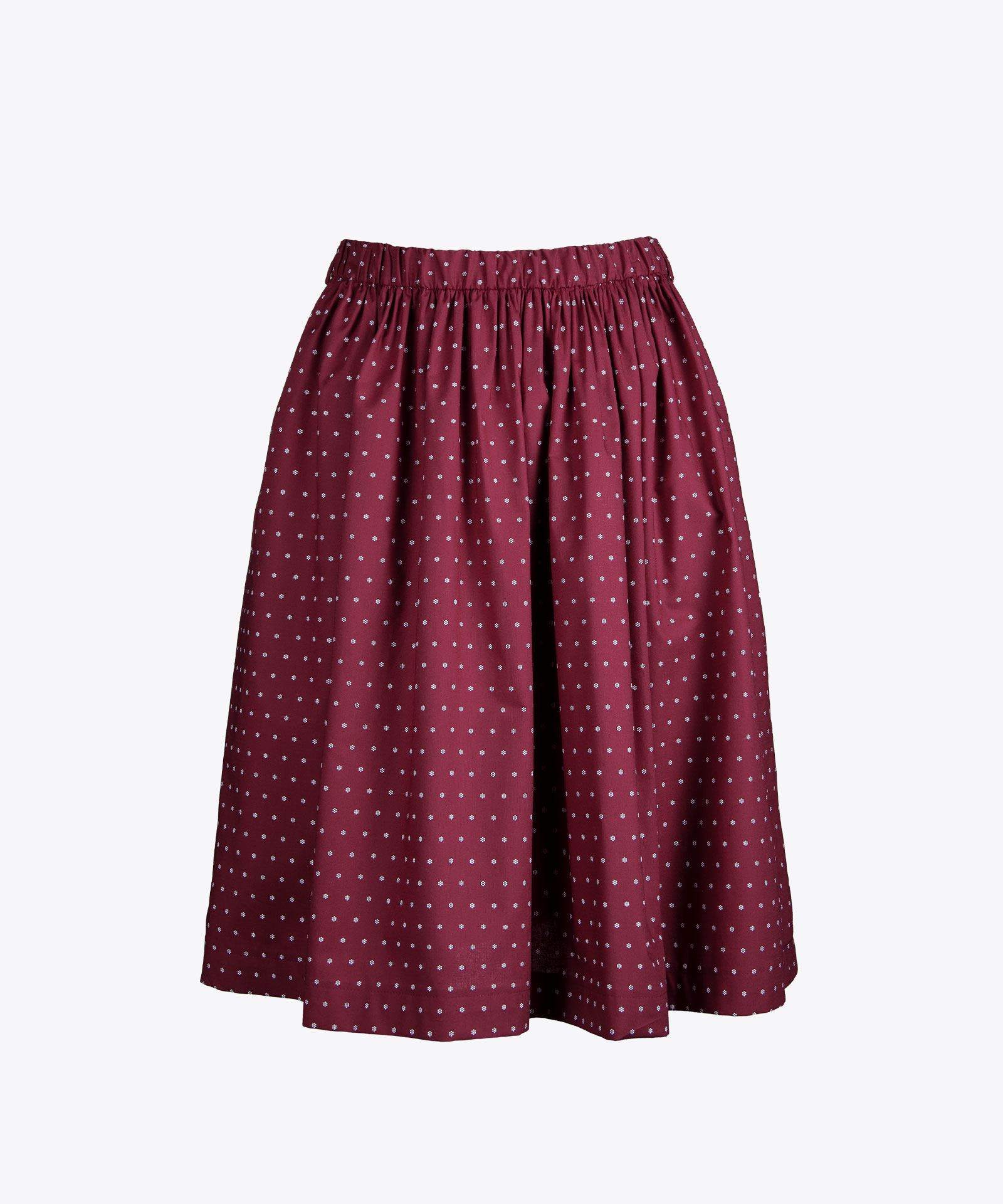Baumwollrock mit Streumuster-Design; Midi-Rocklänge; Elastikbund mit seitlichen Gürtelschlaufen; rechts mit Tascheneingriff; ungefüttert Material: 100% Baumwolle