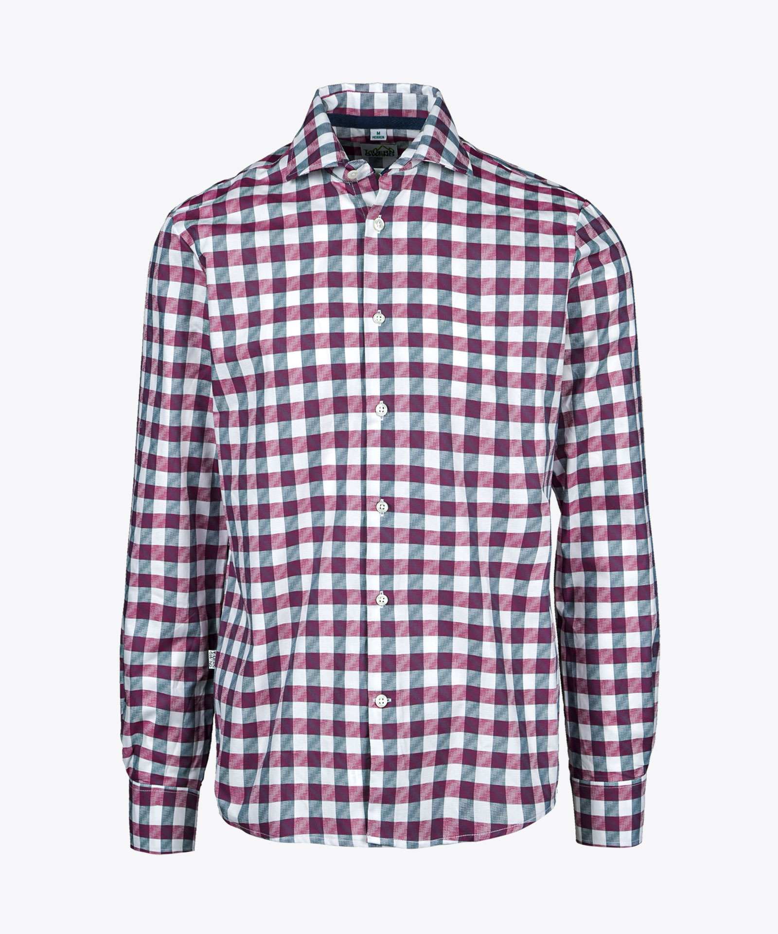 Karodesign in Vintage-Optik durch Jacquard-Webtechnik; gerundeter Saumabschluss; hell schimmernde Knöpfe in wertiger Perlmutt-Optik; Haifischkragen Material: 100% Baumwolle