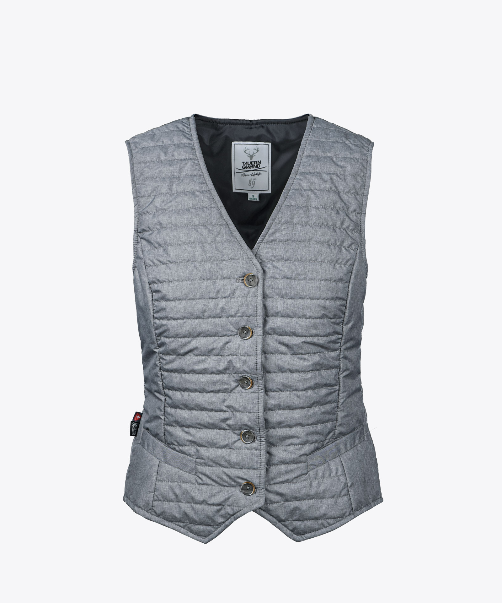 Wattierte Steppweste mit leichter Isolationsfüllung aus hauptsächlich recycelten Polyesterfasern; Außenstoff wasserabweisend; zwei Eingriffstaschen; V-Ausschnitt mit Knopfverschluss; PrimaLoft® Isolierung 40 g; gefüttert