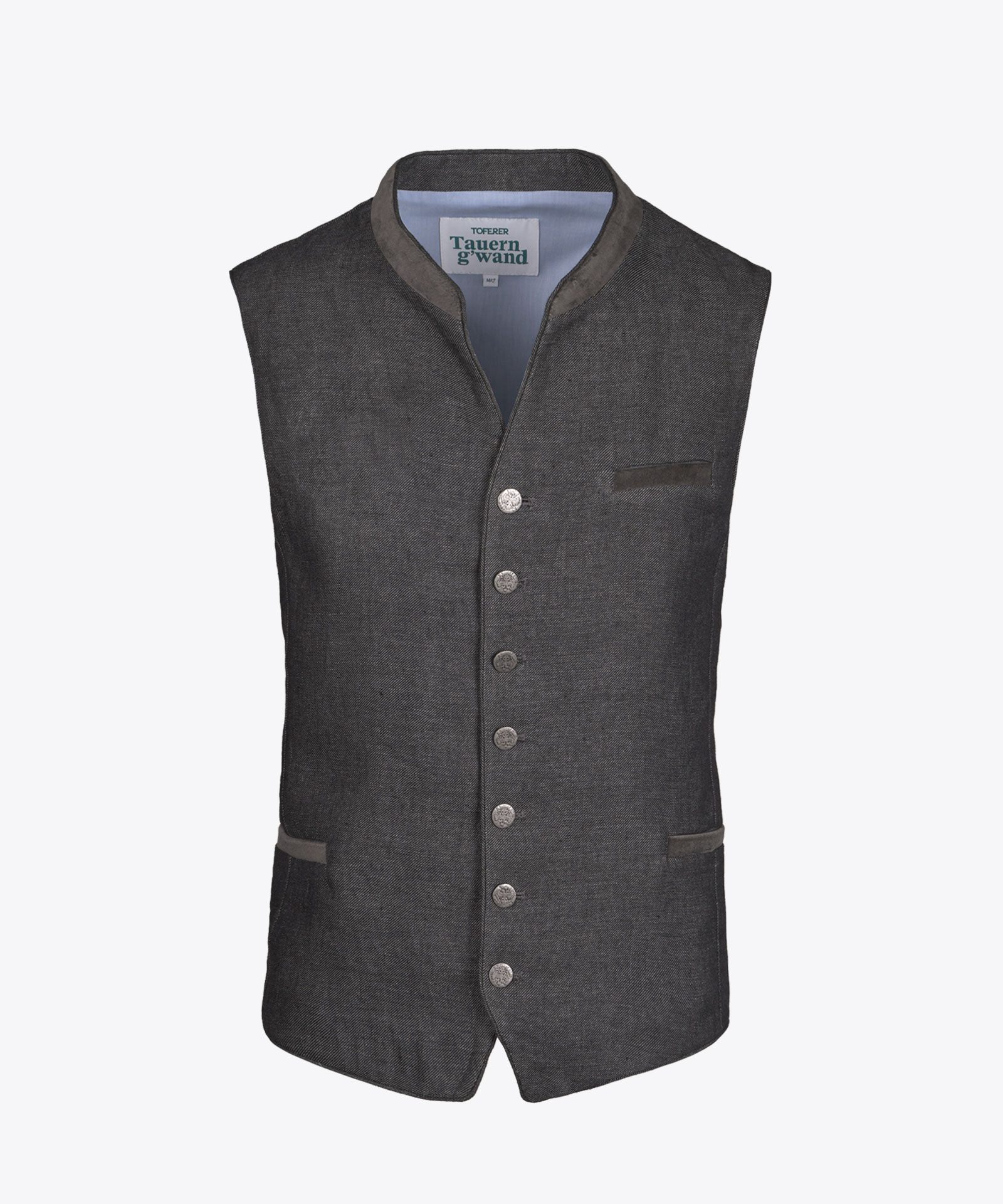 Leinenweste an Vorder- und Rückenteil aus speziellem garngefärbtem Délavé-Webstoff in unregelmäßiger Leinenstruktur, erhält durch das Waschen einen Vintage-Look*; Samtstoff-Kontrasteffekte an Kragen außen und Tascheneingriffen; am Rücken in der Weite regulierbar; V-Ausschnitt mit kleinem Stehkragen; Metallknöpfe; Herren mit Brusttasche am linken Vorderteil; Innenfutter in Baumwolle