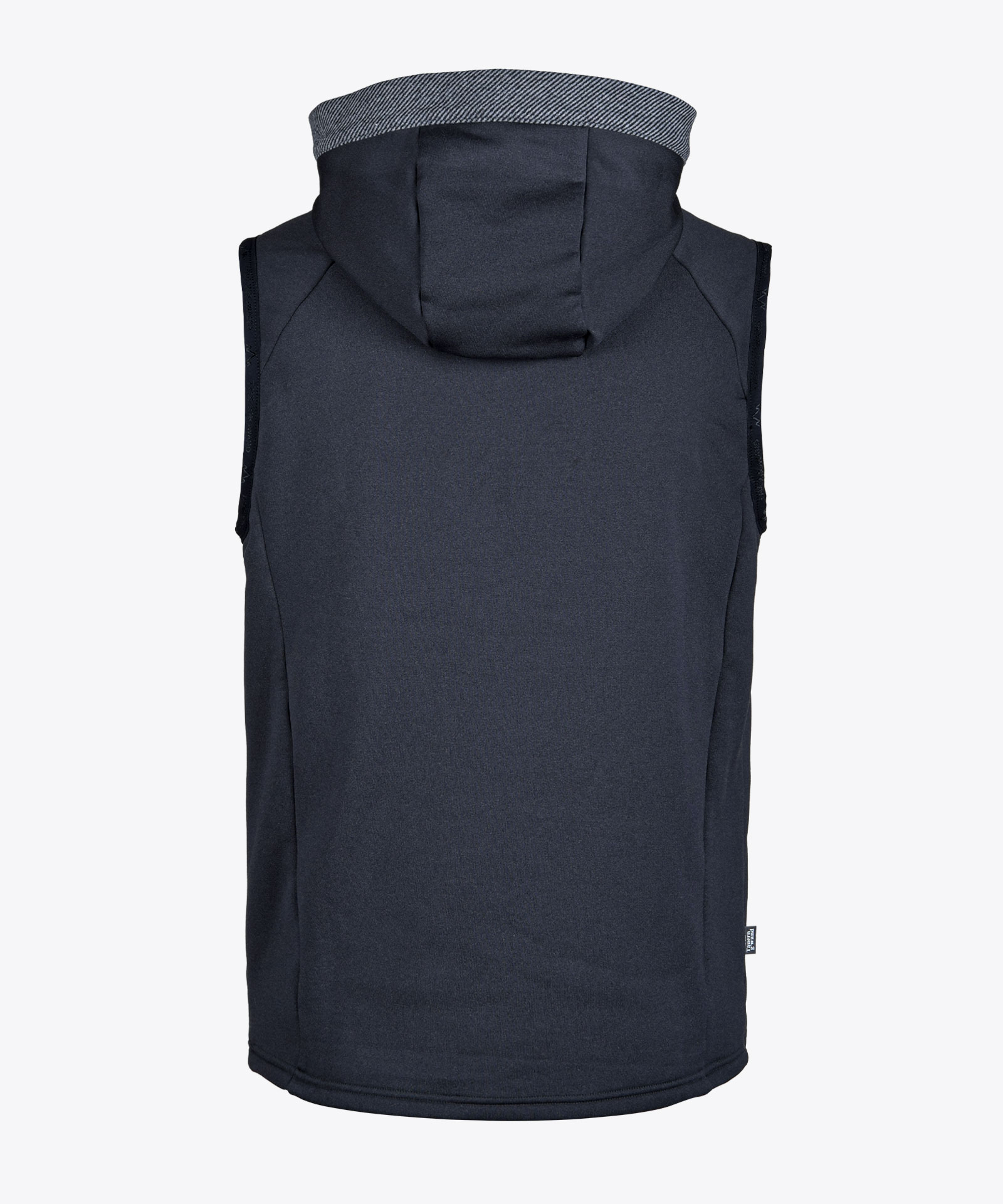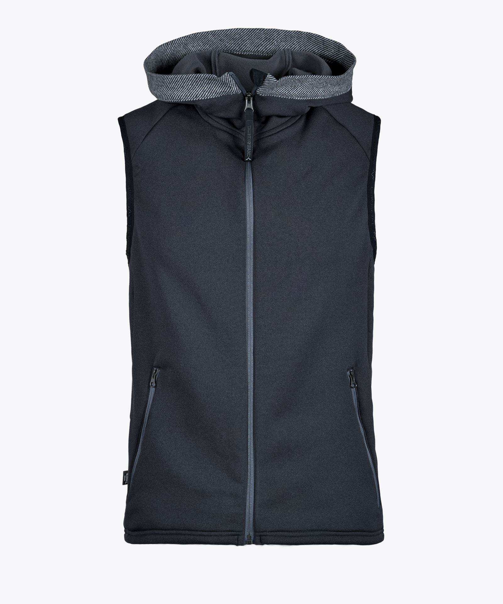 Angenehm weiches Tragegefühl in hochwertiger 4-Wege Tecno-Stretch-Fleecequalität mit hoher Bewegungsfreiheit trotz figurbetonter Passform; glatte Oberfläche mit Melange-Effekt, aufgeraute Innenseite, gute Wärmeisolation; Frontzipp und zwei Zipptaschen in kontrastfarbenen Grauton; Elastikeinfassung an Armabschluss in Farbe schwarz; angeschnittene Kapuze mit Kontraststoffeinfassung, optional für Wording-Logo-Druckgestaltung