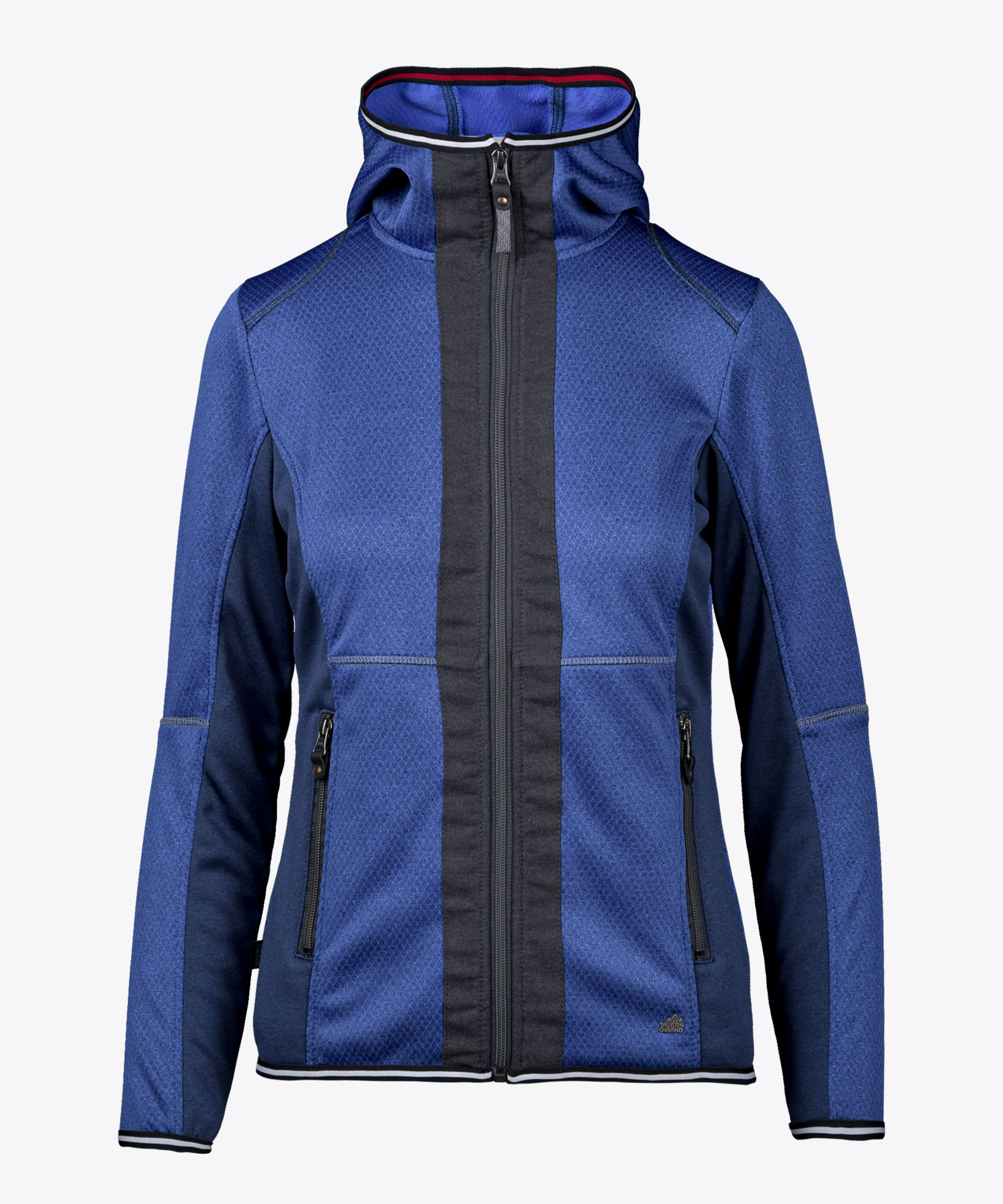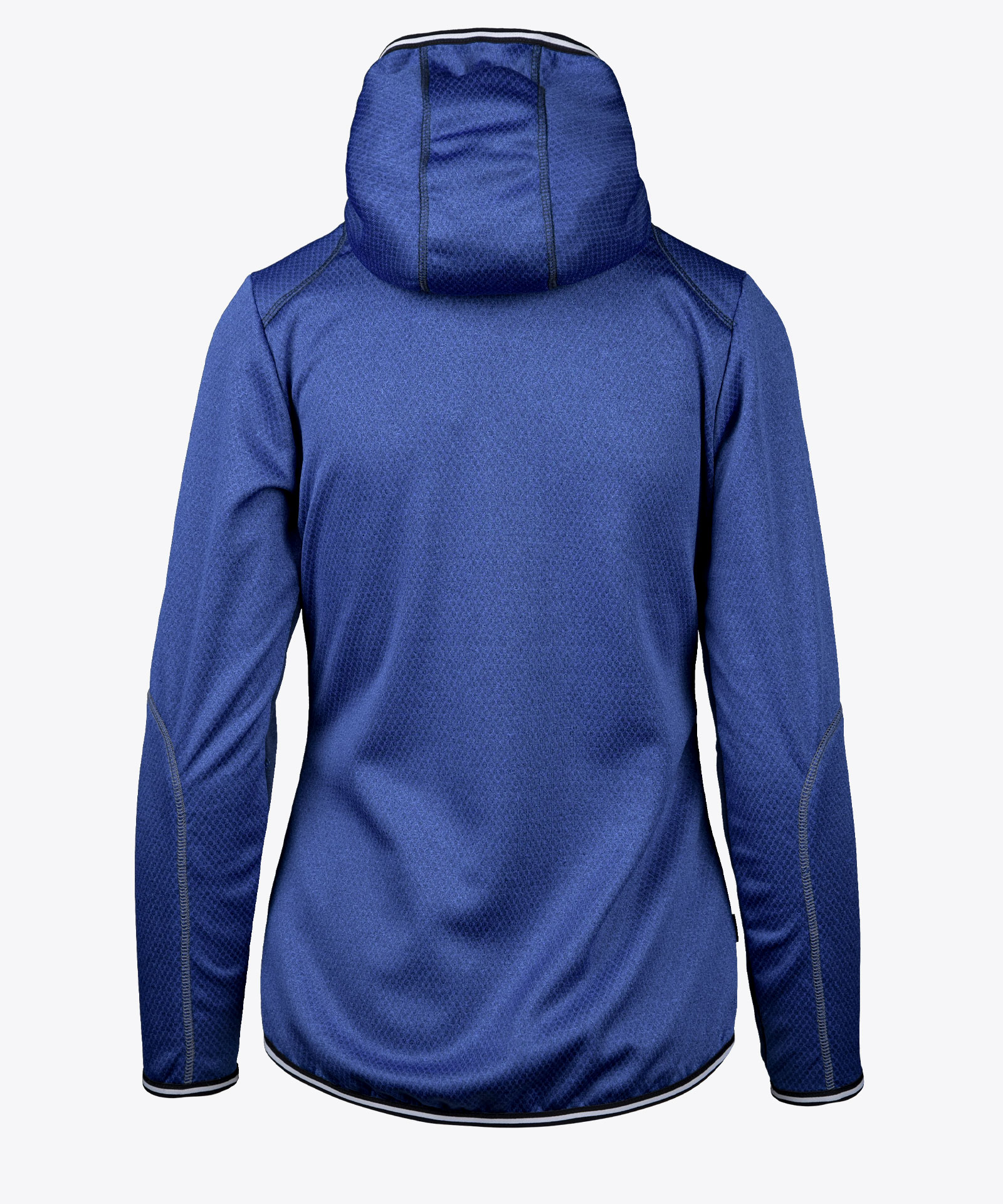 Fleecejacke in Wabenstruktur an der aufgerauten Fleeceinnenseite; elastisches Knitshell-Material an den Seiten- und Ärmeleinsätzen in Melange; Blende entlang Front-Zipp in Woll-Look; angeschnittene Kapuze; Kontrastierung an Zipps und Elastikeinfassung am Saum, Ärmel- und