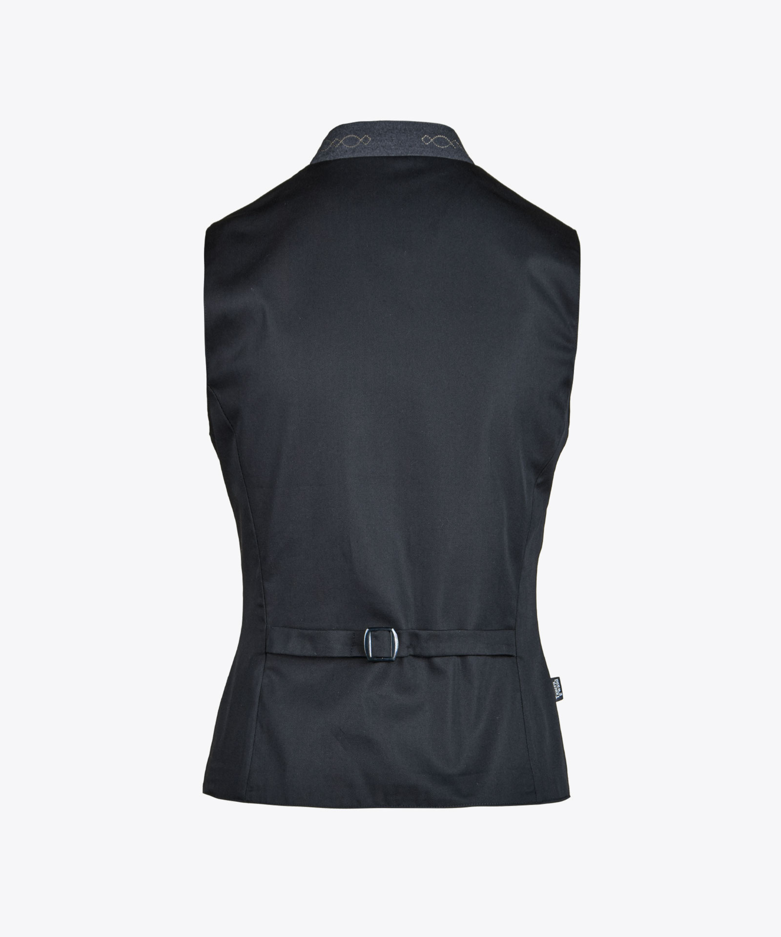 Rückenteil aus schwarzem Baumwollstoff und mit verstellbarem Rückenriegel; bestickter Stehkragen;