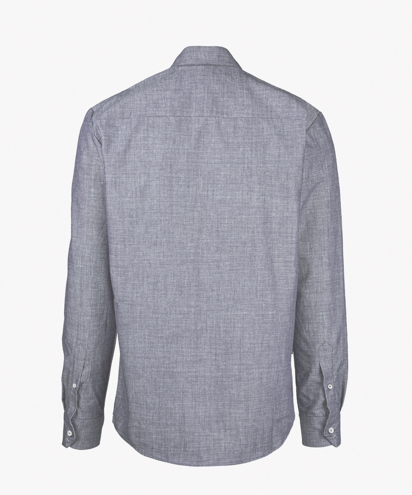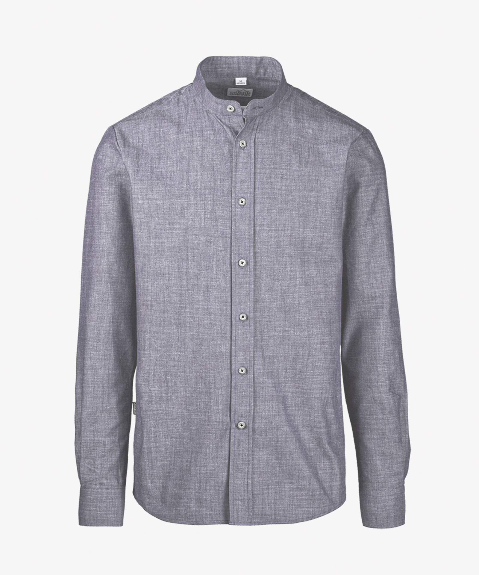 Druckdesign im Denim-Look; semi-transparente Knöpfe und Kontrastfaden; Herren mit Stehkragen